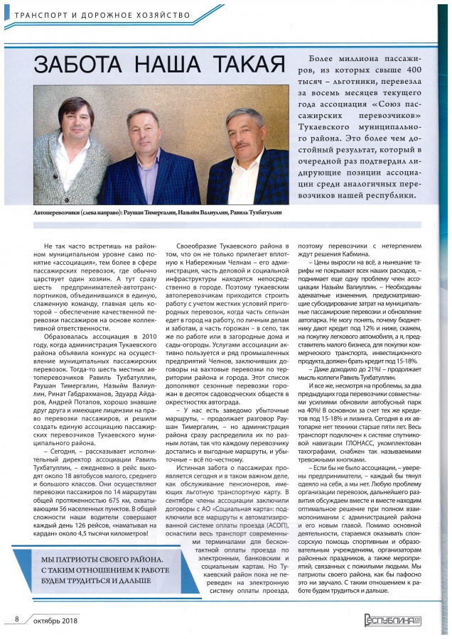 В честь дня профессионального праздника выпущена статья, под редакцией Махмутовой Лилии "Пассажиры будут довольны" в газете "Светлый путь" №79(6189) от 25.10.2019г.